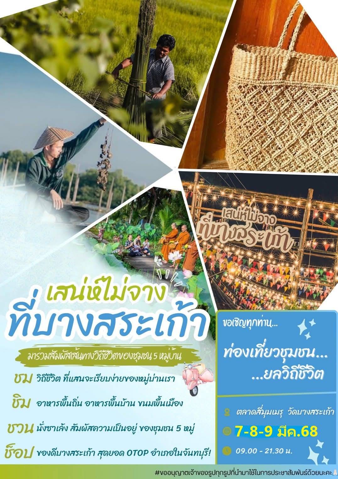 ชื่อเรื่อง : ประชาสัมพันธ์ ขอเชิญทุกท่านท่องเที่ยวชุมชน ยลวิถีชีวิต ตลาดสี่มุมเมรุ วัดบางสระเก้า วันที่ 7 - 8 - 9 มีค.68 เวลา 09.00 - 21.30 น.